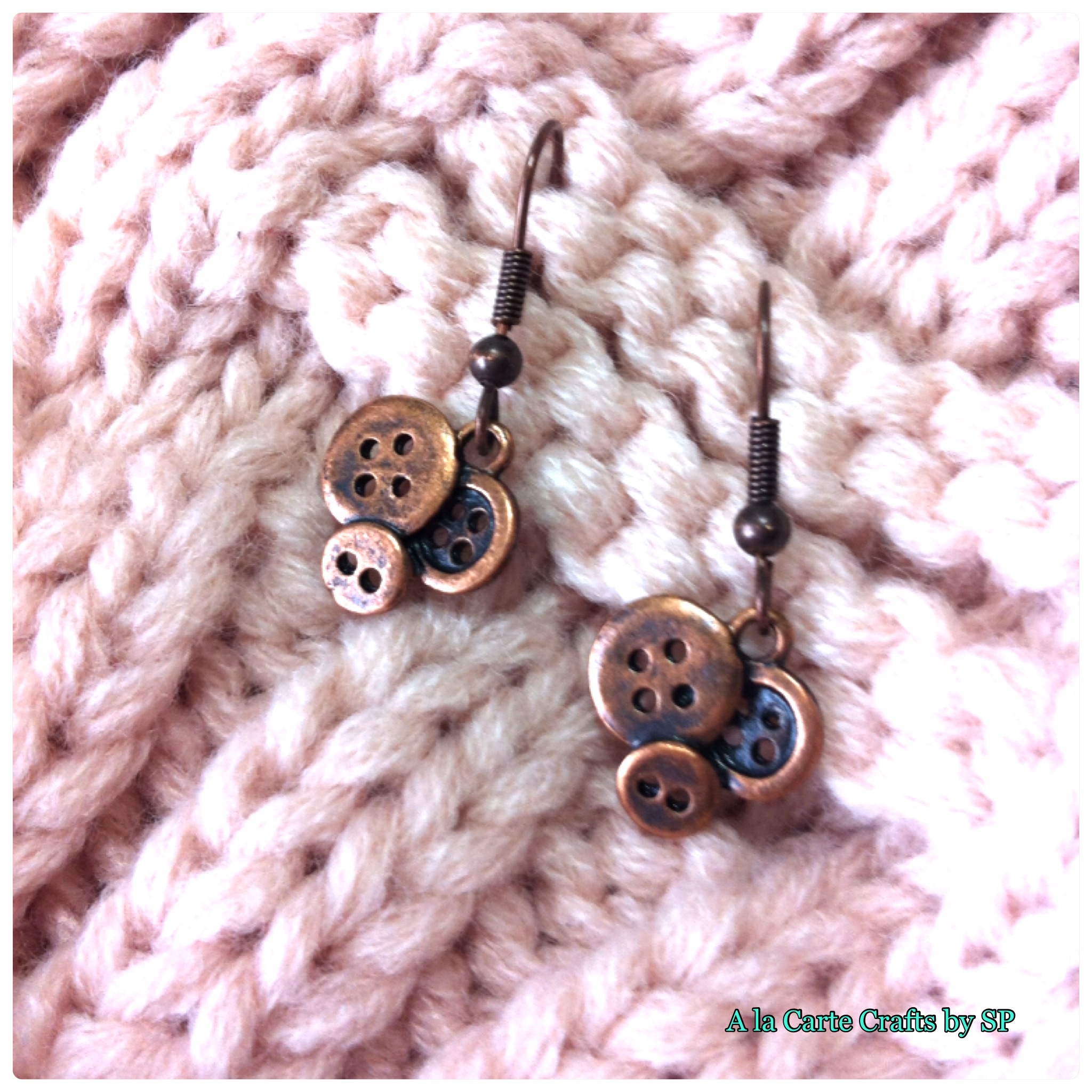 Cute Copper tone Button Earrings.