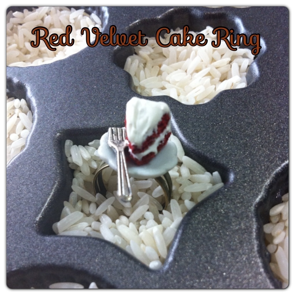 A miniature red velvet cake frosted with white icing, sitting on a plate smaller than a size of a penny with a fork on the side. Perfect for cake lovers!